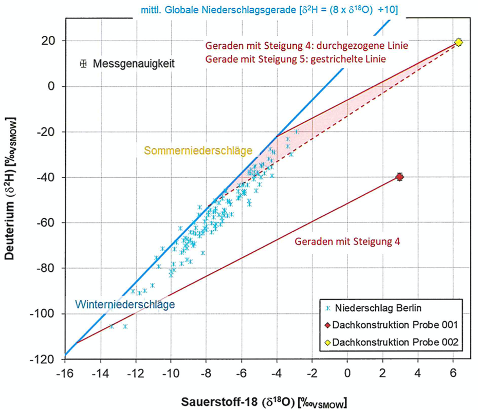Bei diesem Messverfahren handelt es sich um eine zerstörungsfreie Messung. Zu Referenzzwecken können zusätzlich Baustoffproben entnommen werden. Anhand derer dann eine zusätzliche Evaluierung der Messwerte durchgeführt werden kann. Bei der Mikrowellenmessung wird die Dielektrizitätskonstante vom Wasser genutzt, um in Abhängigkeit von der jeweiligen Rohdichte des zu untersuchenden Materials den Feuchtegehalt zu bestimmen. Die Messung beruht darauf, dass nur die freien Wassermolekülen durch ein elektrisches Feld angeregt werden. Sie beginnen an zu schwingen. Diese Schwingungen können messtechnisch erfasst werden. Somit bei der Mikrowellenmessung ausschließlich freies und nicht gebundenes Wasser erfasst wird. Der jeweilige Frequenzbereich der verwendeten Sonde bestimmt die Untersuchungstiefe. Mit unterschiedlichen Sonden können so unterschiedliche Tiefenfraktionen erfasst und bewertet werden. Im Ergebnis ein mehrdimensionales Feuchtebild Aufschluss über die Feuchtemenge (Durchfeuchtungsgrade) und Feuchteverteilung gibt. Von der Art der Feuchteverteilung können Rückschlüsse auf die Durchfeuchtungsursache gezogen werden. In Abhängigkeit von dem jeweiligen Schadensbild und der Untersuchungsaufgabe werden ergänzend Isotopenanalysen durchgeführt mit denen neben der Herkunft des Wassers auch häufig der Zeitpunkt der Durchfeuchtung und die Verweildauer des Wassers in der Konstruktion abgeschätzt werden können.