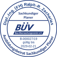 Wir können die Rezertifizierung durch den BÜV Bau-Überwachungsverein e.V. für Herrn Ralph-René Zacharias als Sachkundiger Planer in der Betoninstandhaltung für weitere 3 Jahre nach den Vorgaben des Ausbildungsbeirates Sachkundiger Planer (ABB-SKP) bestätigen.